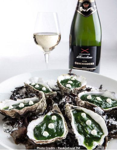 "Huîtres Spéciales sur une Royale de Foie Gras de Canard et Coulis de Cresson"